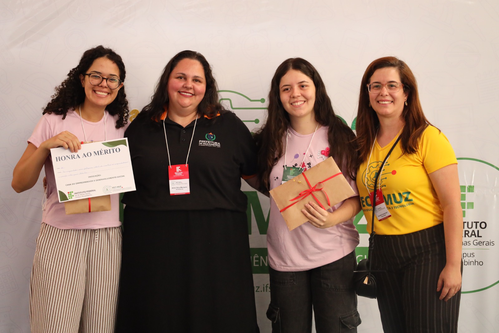 Os membros dos grupos receberam medalha de honra ao mérito e um brinde porta celular desenvolvido no Espaço Maker do Campus Muzambinho. Os certificados serão enviados por e-mail.