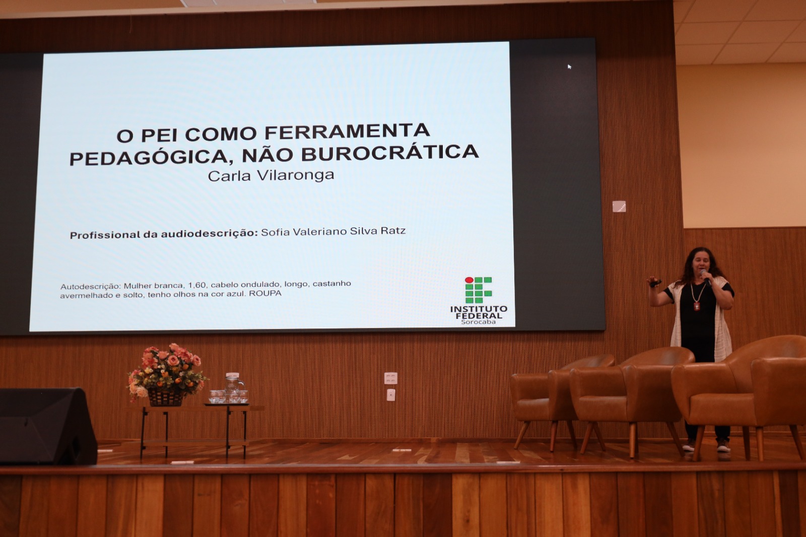 Na sequência, Carla Vilaronga trouxe uma análise sensível e prática sobre o PEI (Plano Educacional Individualizado), defendendo-o como uma ferramenta pedagógica viva, construída de forma colaborativa entre educadores e estudantes, e não como um instrumento meramente burocrático. Sua abordagem provocou reflexões importantes sobre o planejamento pedagógico inclusivo e a corresponsabilidade institucional nesse processo.