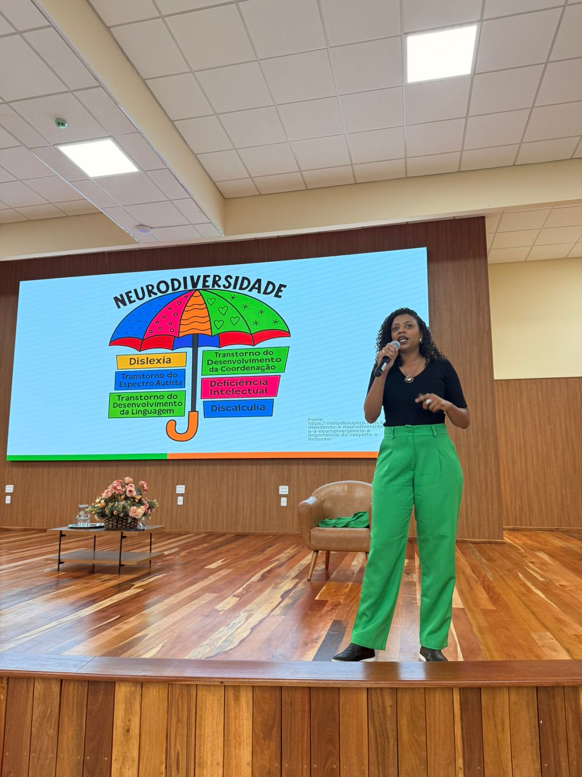 Encerrando o evento, Thálita Santos discutiu o tema da neurodiversidade e das barreiras de aprendizagem, convidando a comunidade escolar a repensar práticas pedagógicas, atitudes e espaços escolares. Sua fala destacou que reconhecer a diversidade neurológica é um passo essencial para promover uma educação mais justa, acolhedora e eficaz.