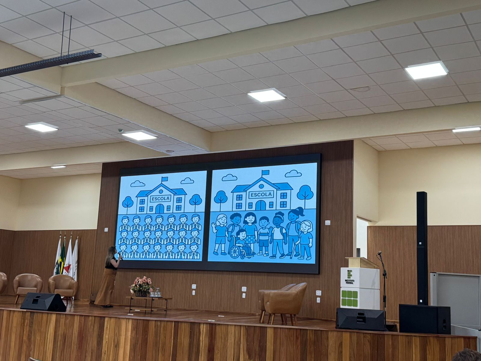 As palestras realizadas ao longo dos dois dias foram momentos de grande riqueza formativa, trazendo à comunidade escolar reflexões profundas e perspectivas complementares sobre diferentes dimensões da inclusão.