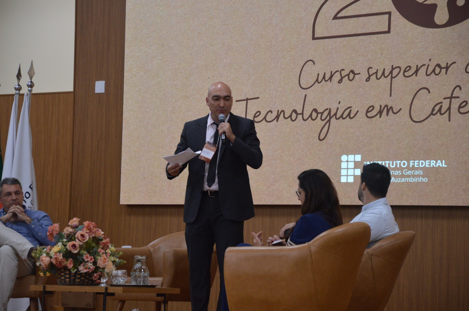 A cerimônia comemorativa reuniu autoridades, professores, estudantes, egressos e representantes do setor cafeeiro, entre eles o diretor-geral do campus, professor Renato Aparecido de Souza; o coordenador do curso, professor Gustavo Rabelo Botrel Miranda; a primeira coordenadora, professora Anna Lygia de Rezende Maciel; e o diretor de Tecnologia da Informação do IFSULDEMINAS, Ramon Gustavo Teodoro Marques da Silva, que representou o reitor professor Cléber Ávila Barbosa.