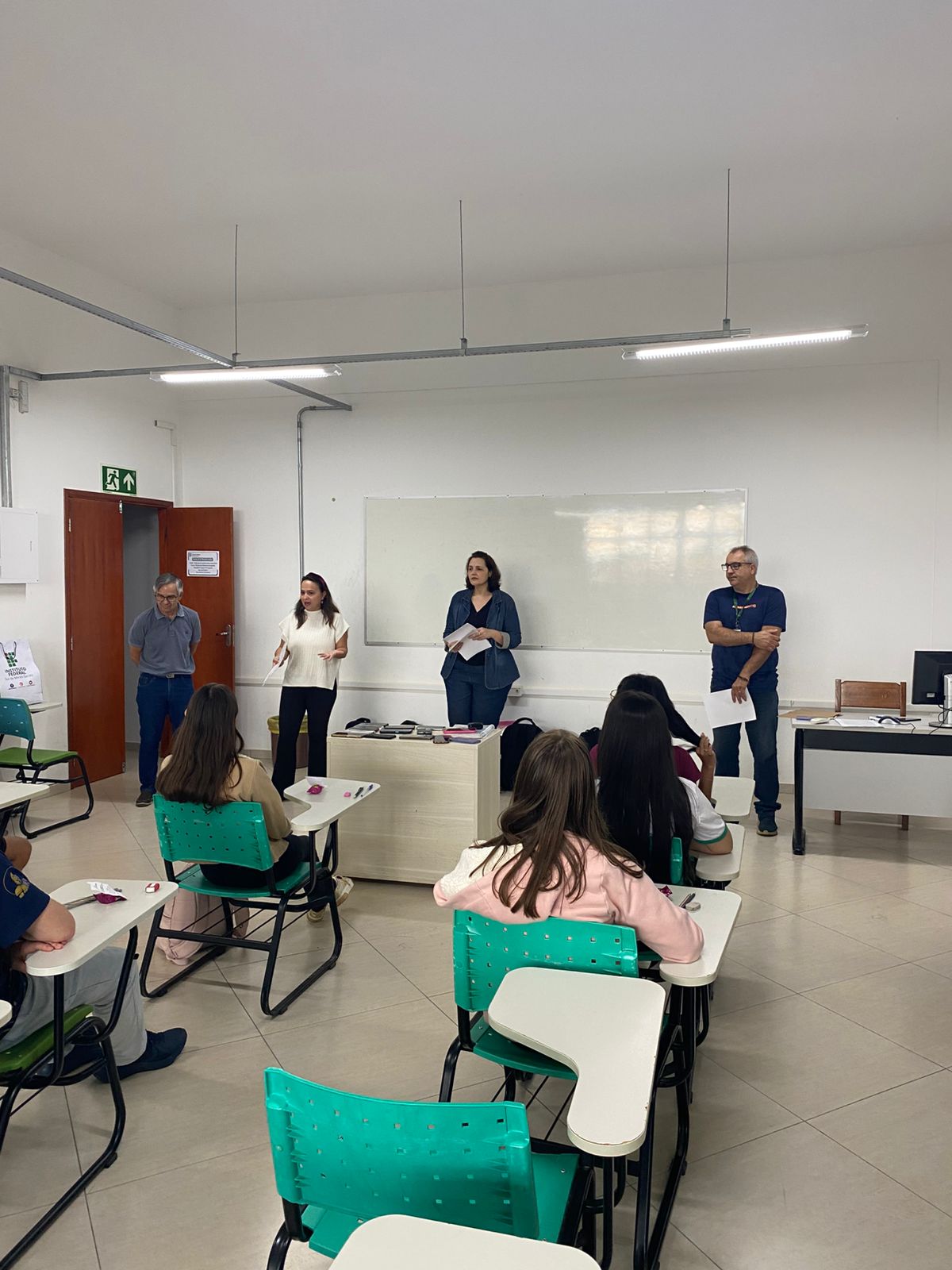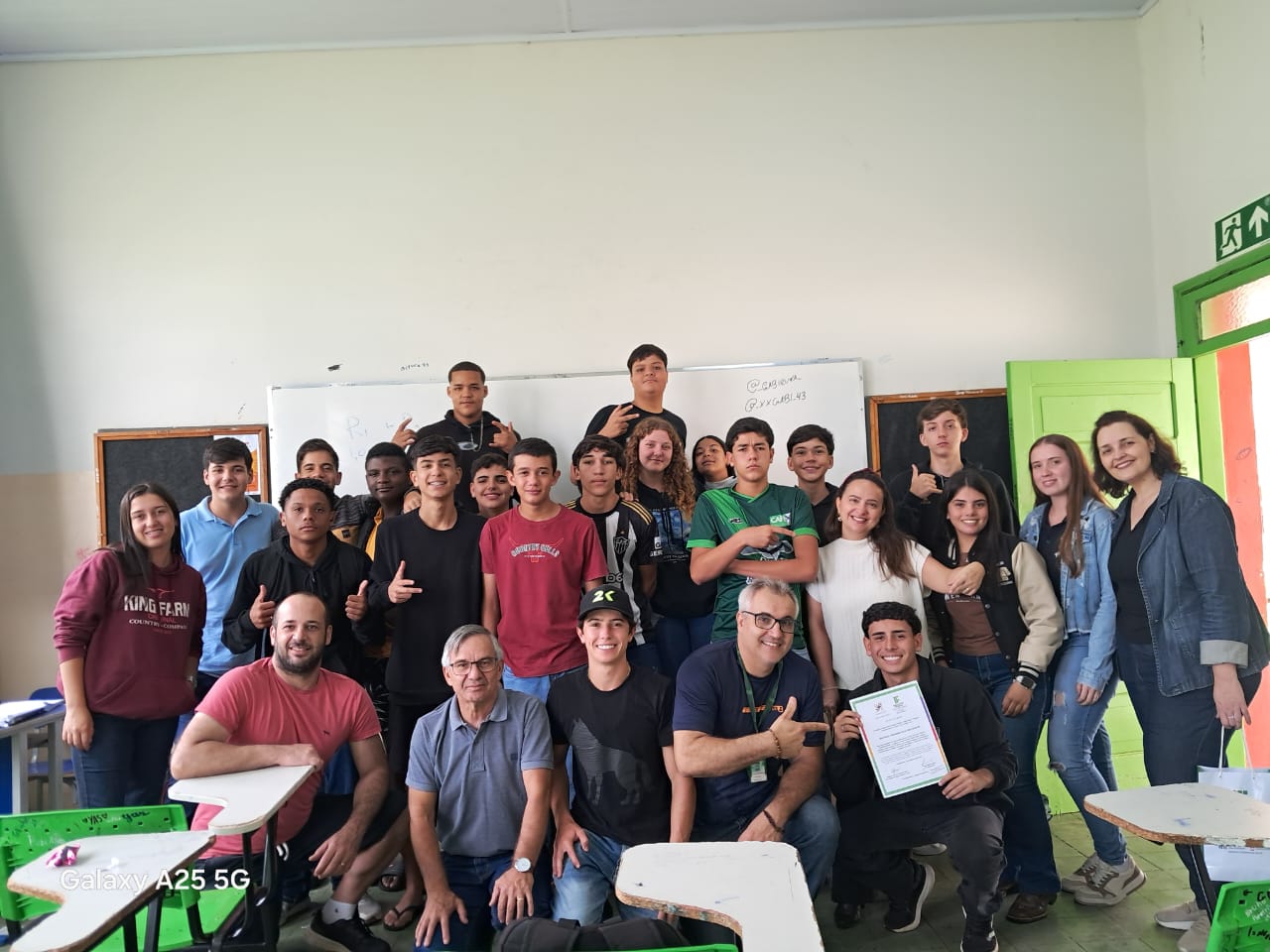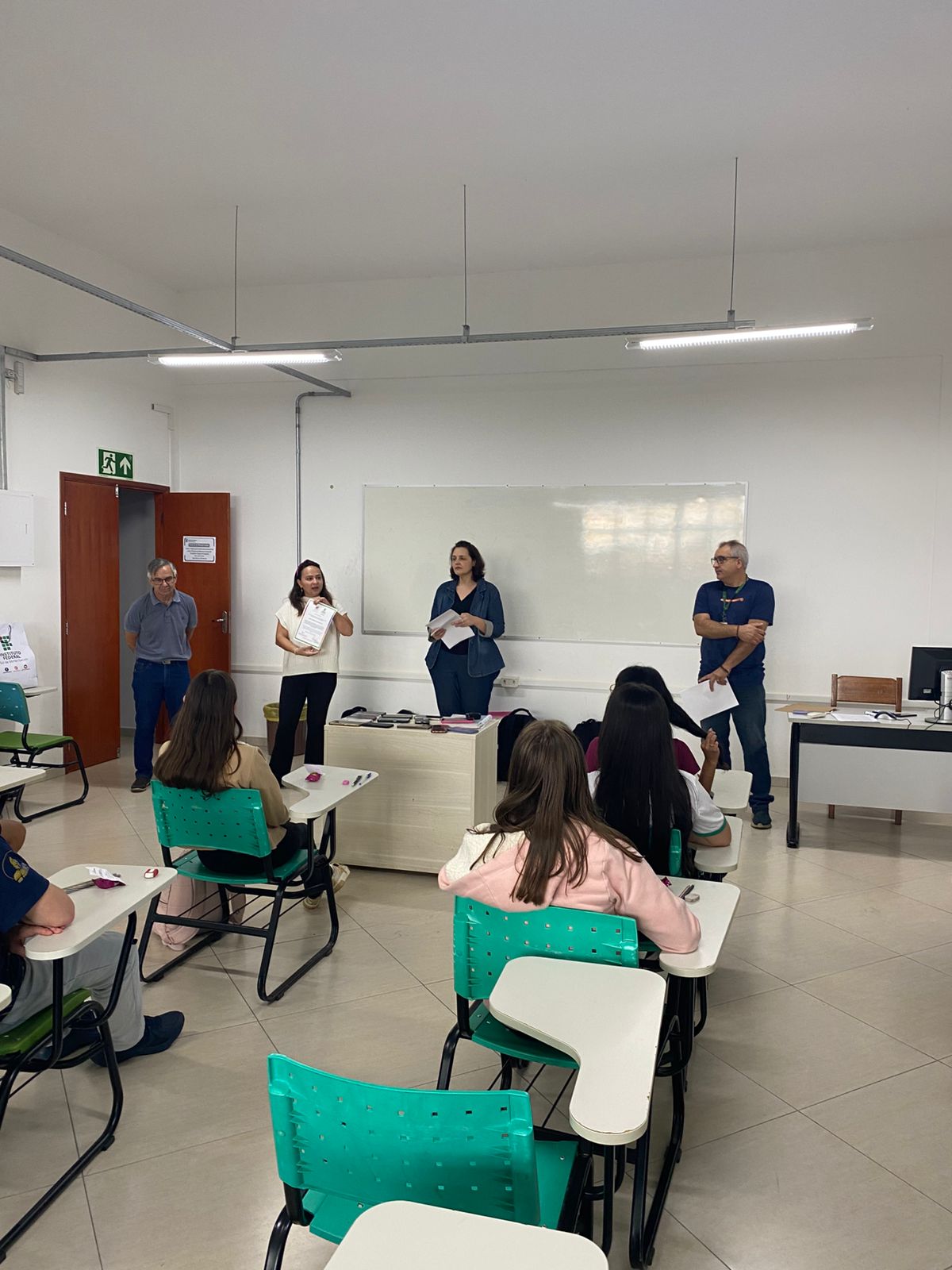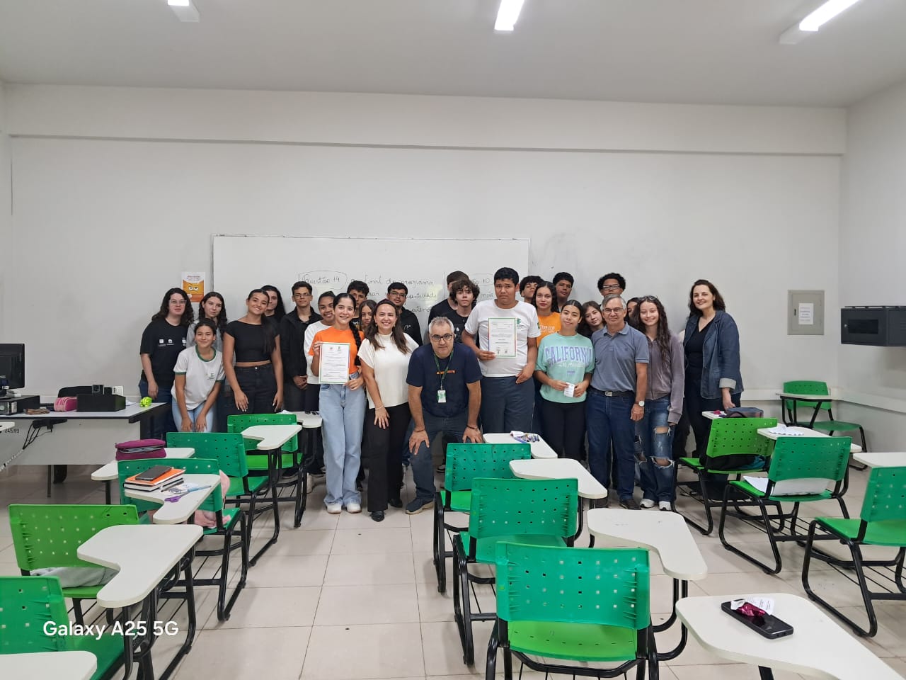 Como forma de reconhecimento, os estudantes que participaram de 80% ou mais das oficinas em todos os bimestres receberam certificados de participação. A entrega foi realizada diretamente nas salas de aula, com a presença dos professores responsáveis pelas oficinas, da Coordenadora Geral de Ensino e do Diretor de Ensino do campus, Hugo Baldan Júnior, que percorreram as oito turmas para celebrar o encerramento da proposta junto aos estudantes.