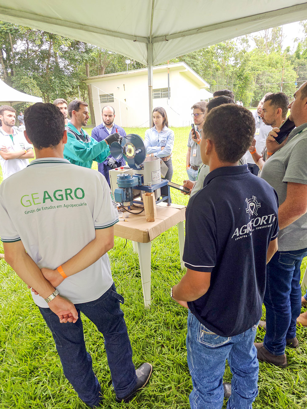 Complementando a programação, as equipes da Agrifort Jr. e do GEAGRO integraram-se aos CTCs da Cooxupé nos dias 20 e 27 de janeiro para um treinamento especializado. Conduzido pelo Seedcare Institute Syngenta nas dependências da cooperativa, o curso focou em tratamento industrial, defensivos e patologias de sementes, além do combate a nematoides.