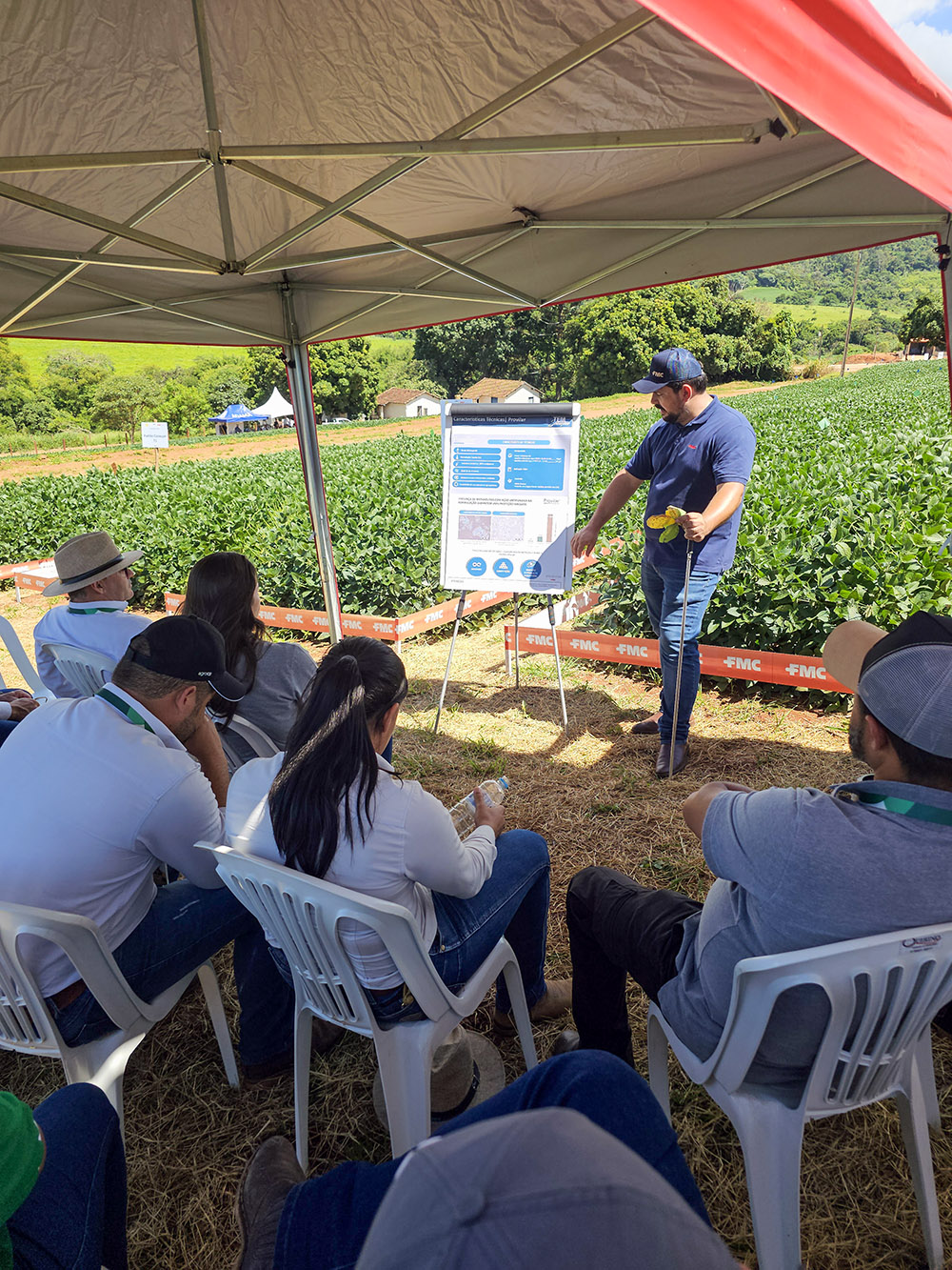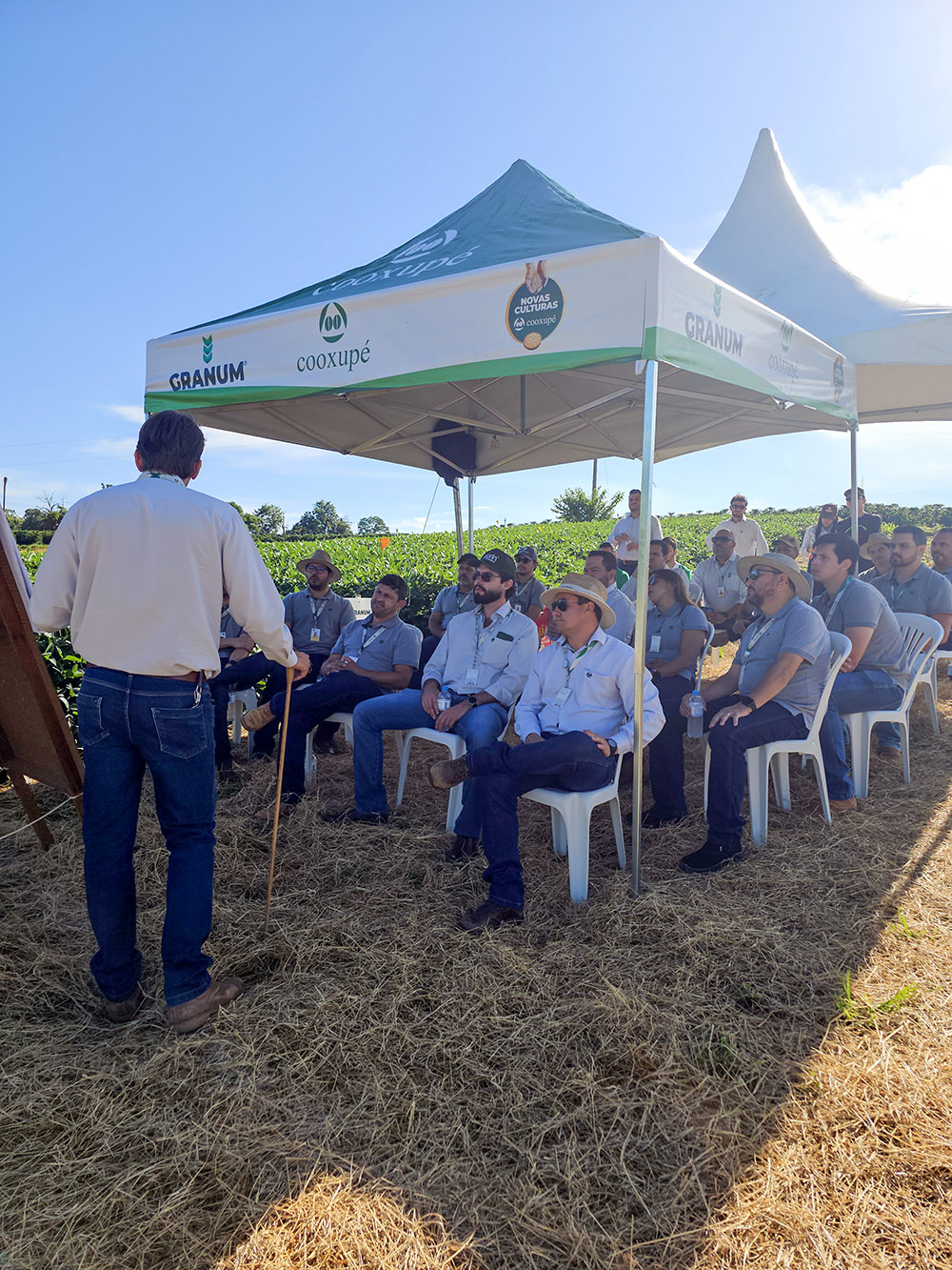 A programação deste ano teve início nos dias 21 e 28 de janeiro, dedicada à capacitação de Consultores Técnicos Comerciais (CTCs). Na ocasião, a Cooxupé apresentou seu novo fertilizante foliar próprio, enquanto as empresas Adama, FMC e Syngenta detalharam seus portfólios e posicionamentos para as culturas de milho e soja, apresentando também os resultados parciais dos projetos de soja em condução.