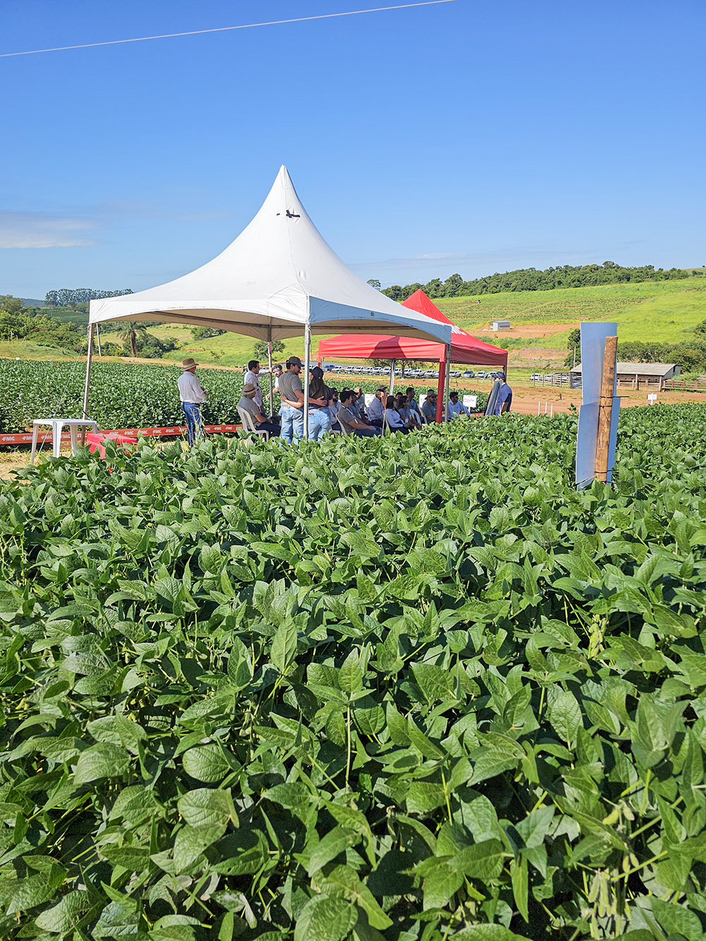 IMG 20260130 WA0134O encerramento ocorreu no dia 30 de janeiro com um dia de campo para produtores rurais, que conferiram de perto os manejos aplicados à cultura da soja. Representando a instituição, estiveram presentes a Coordenadora de Pós-Graduação do IFSULDEMINAS, Nathália Luiz de Freitas; o Diretor-Geral do Campus Muzambinho, Renato Aparecido de Souza; o Coordenador do CVT, Felipe Campos Figueiredo; e a Coordenadora do CVT Grãos, Ariana Vieira Silva.