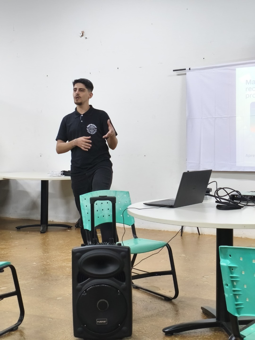 Ainda na programação da noite, o egresso do curso de Licenciatura em Educação Física e estagiário do laboratório de pesquisas do Grupo de Estudos e Pesquisas de Professoras e Professores de Educação Física, GEPROFEF, professor Luís Felipe de Oliveira Rodrigues, apresentou uma análise sobre os recursos educacionais produzidos nos polos do programa nos últimos anos. A exposição integrou a pesquisa “MapaPROEF: cartografias da produção de recursos educacionais no mestrado profissional em Educação Física”, desenvolvida no âmbito do GEPROFEF.