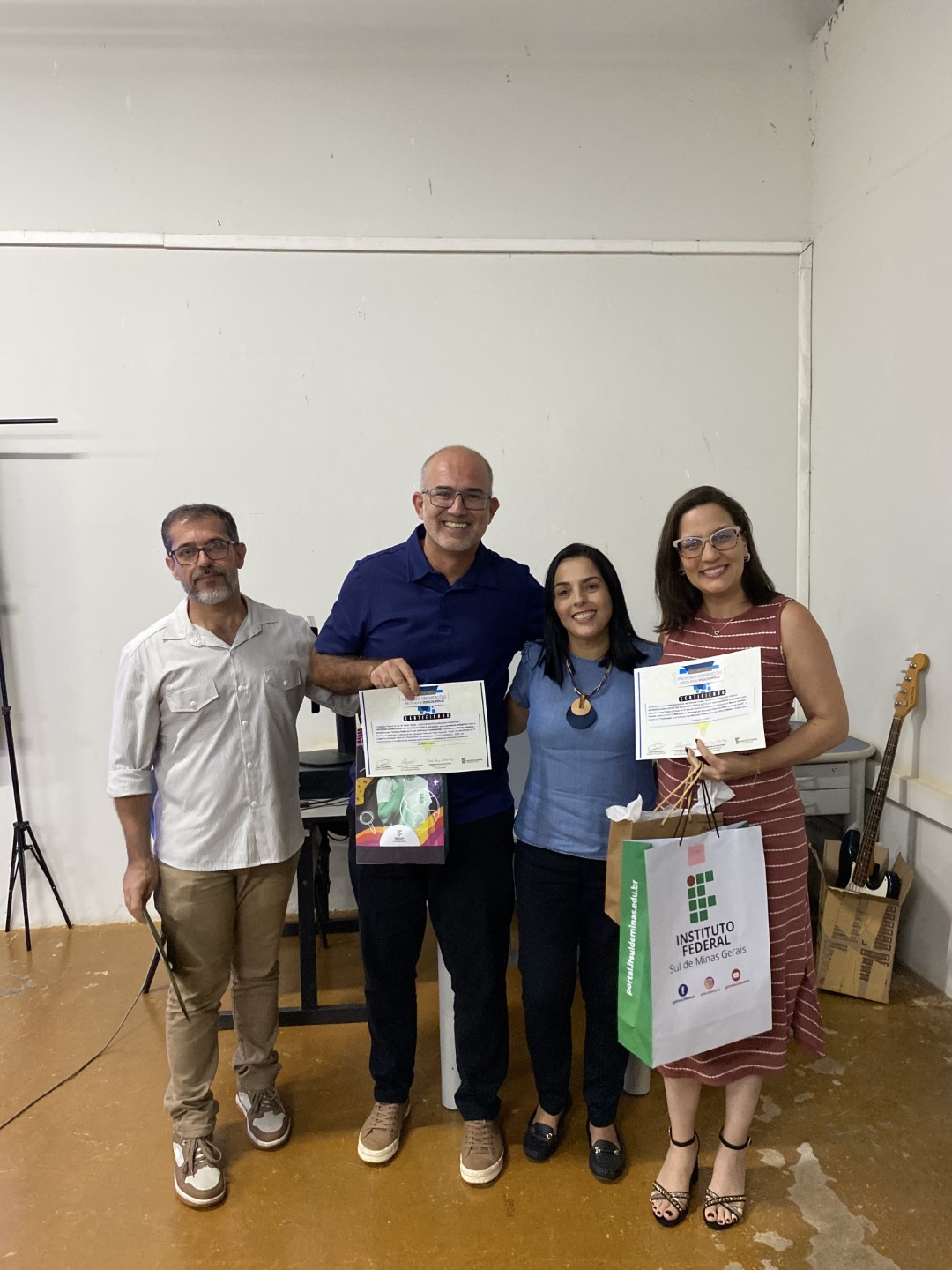 Um dos momentos centrais da noite foi a premiação das dissertações destaque produzidas no polo Muzambinho em 2025. A iniciativa, realizada pela reitoria, reconheceu trabalhos que dialogam com os objetivos do mestrado profissional e com a produção de recursos educacionais vinculados às realidades escolares. Foram premiados os seguintes egressos: